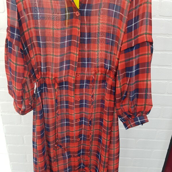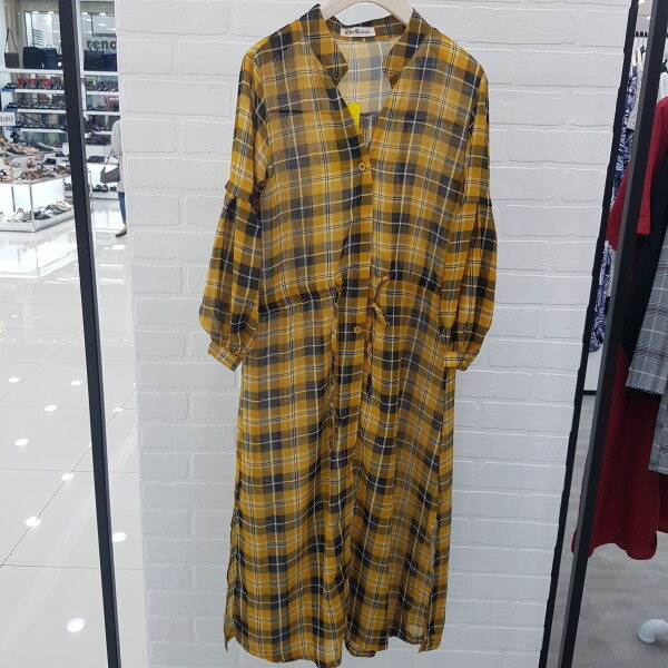 체크 스트링 로브 롱 가디건입니다