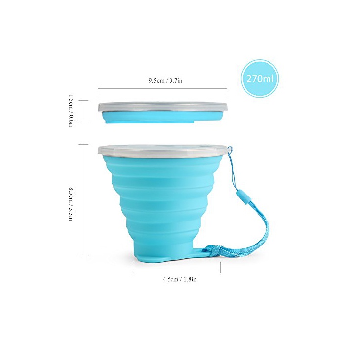 전개시에 통상의 컵으로서 용량270ml,접이식시에 불과 0.6인치의 두께.