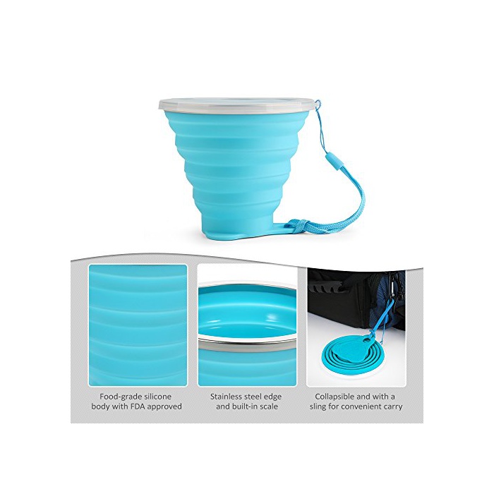 Docooler 270ML 트래블 워터 컵 접는식 FDA승인의 실리콘 아웃도어 캠프용