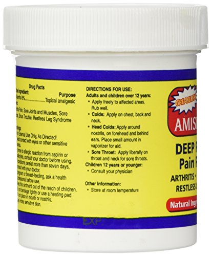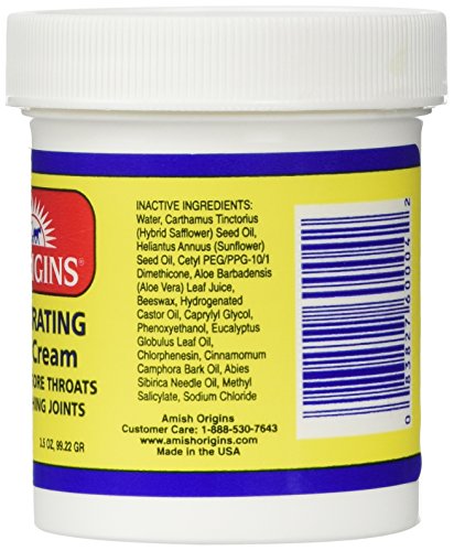 ReleaseDate : 2016-07-16 Studio : Everready First Aid Publisher : Everready First Aid Binding : Health and Beauty Product Description Pain Relief Cream Amish Origins 3.5 oz Works wonderfully for arthritis, sore muscles and joints, cuts, abrasions, bruises, cough due to colds, head colds, throat congestion, sinus problems, and much, much more. The same amazing results as the original Amish Origins but in a grease-less lotion base. 0