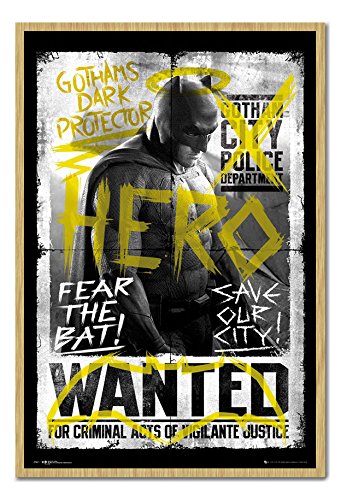 -. Title : Batman V Superman - Batman Wanted Poster Magnetic Notice Board Beech Framed - 96.5 x 66 cms (Approx 38 x 26 inches)