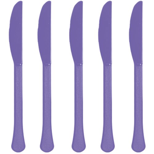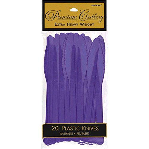 Party Perfect Reusable Premium Plastic Knives Tableware, Purple, Full Size, Pack of 20