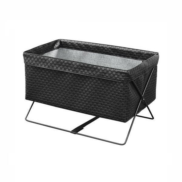 | 男性用のビジネスバッグもラクラク入って、イス下にも置ける使い勝手が良いサイズの手荷物入れです。袋部分は立体的なエンボス加工を施したメッシュレザー調の合皮を使用。和・洋問わずお使い頂けるテイストに仕上げています。 |