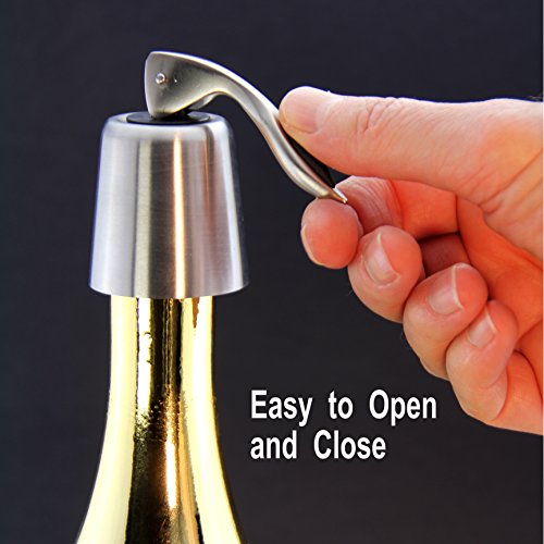 -. Feature : WHATS THE PROBLEM First a few facts. Wine will taste best when consumed on the day it is opened. So if you can always finish a full bottle, you have no need for this product, but you may have a need for alcoholics anonymous. The initial oxygen opens up a wine allowing aromatic compounds to fill the glass and gives it its character, but overtime it will lose its aroma and body and eventually oxidise to vinegar. From the moment you open a bottle this process starts. So what can we do about this. / DESIGNED TO SLOW OXIDISING PROCESS We need to prohibit further oxygen entering the bottle and minimise the surface area of the wine. The Wine Spout Stopper forms a total seal, prohibiting further oxygen to enter and slowing this process. The unique and easy to use closing operation and rubber seal forms an air tight boundary protecting your wine and maintaining its aroma and body. To minimise the surface area always store your opened wine upright and not on its side and keep refrigerated. / BUILT OF MATERIALS THINKING OF YOU. When using materials near food only an absolute guarantee of safety is acceptable. The Wine Spout Stopper is made of high quality SUS304 stainless steel food grade material to not contaminate your wine. The product is non rusting and lead free. The eco friendly silicone built in plug creates the seal to prevent further oxygen entering the bottle and is made of food grade silicon and is odourless to ensure your wine is not contaminated in any way. / COMPACT UNIT. EASY TO USE AND STORE. LOOKS GREAT. The Wine Spout Stopper is designed to complement any bottle of wine. The fine polished finish coupled with a stylish and elegant formed handle makes it an attractive yet fully functional piece of art. The brushed finish means you will never see fingerprints. Its compact size makes it easy to store, and with no protruding parts fits easily into the fridge. To use simply raise the lever, place on the bottle top and lower the lever to seal. / 100% MONEY BACK GUARANTEE. If for absolutely any reason the Wine Spout Stopper does not meet your expectation, you can return it for a full refund no questions asked. Remember no mechanism will maintain the full body of a wine for more than a few days. But for those of us who want to savour a great wine over a couple of days maintaining the fresh taste, the Wine Spout Stopper is your solution.