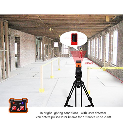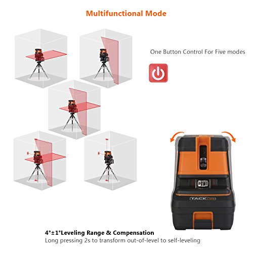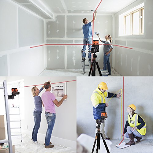 - ▲3 POINTS PLUS 5 SELECTABLE MODES - Easily adjust among different lines mode, 3-point mode, or combined 3-point and cross-line mode for horizontal leveling, vertical leveling, squaring, plumb transfer and layout; Best working disance indoors is 98Ft, ups to 164Ft if with laser detector(not included)