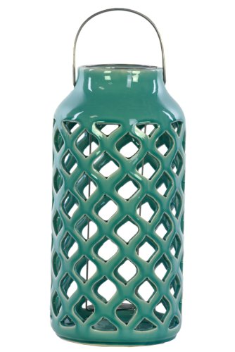 -. Title : Urban Trends 40068 Decorative Ceramic Lantern, Turquoise