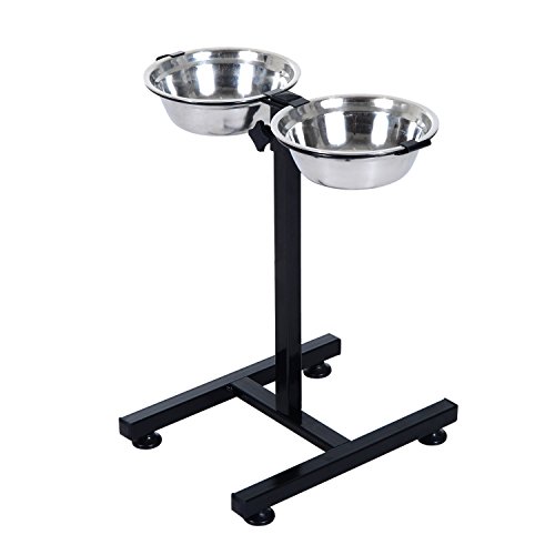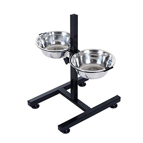 -. Binding : Misc. -. Brand : Pawhut -. Feature : High quality stainless steel bowls are durable and easy to clean / Wide, H-shape base adjusts to match your pet's height / Special lock system holds dishes in place / Simple assembly required / Base Dimensions -. Label : Aosom Direct -. Manufacturer : Aosom Direct -. Model : D08-004-Parent -. MPN : D08-004-Parent -. PackageQuantity : 1 -. PartNumber : D08-004-Parent -. ProductGroup : Pet Products -. ProductTypeName : PET_SUPPLIES -. Publisher : Aosom Direct -. Studio : Aosom Direct -. Title : Pawhut Stainless Steel Adjustable Height Elevated Double Diner Dog Bowls