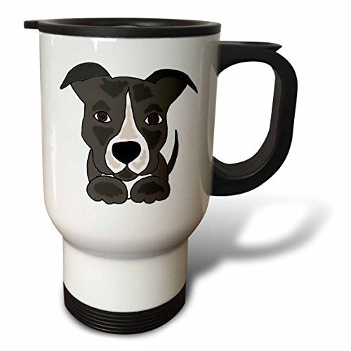 3dRose tm_201801_1 Funny Grey Pit-bull Puppy Dog Cartoon-Travel Mug, 14 oz, Stainless Steel, White