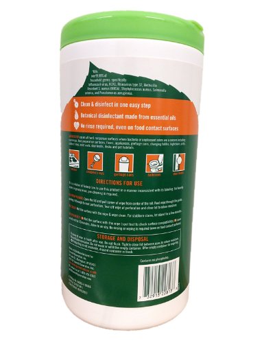 Kills 99.99% of household germs botanically, specifically: Influenza A viruses including H1N1, Rhinovirus (type 37, the Common Cold virus), Staphylococcus aureus, Salmonella enterica, Escherichia coli and Pseudomonas aeruginosa on hard, nonporous surfaces
