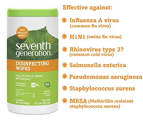Seventh Generation Disinfecting Multi-Surface Wipes, 70-count Tubs (Pack of 6) Packaging May Vary