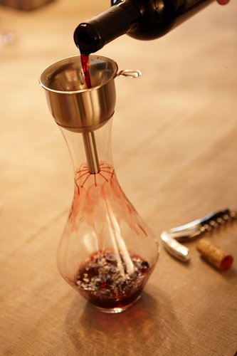 The decanter not only draws out its charm including the aroma of the wine taste but also gives the table elegance.