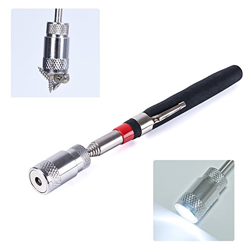 Magnetic Pick Up Tool with Light, SoMarkt One Flexible 31-Inch Telescoping Magnetic Pick-Up Tool with light Retrieve Small Lightweight Iron Nails Screws From Cracks Hard to Reach Places