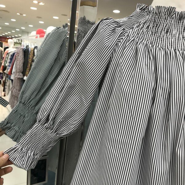 스트라이프 오프숄더 블라우스입니다짱짱한 밴드 디자인으로 어깨를 잡아주어 흘러내리지 않는답니다3가지 스타일로 연출되는 디자인이라 활용도가 좋답니다총장 61cm(FREE)