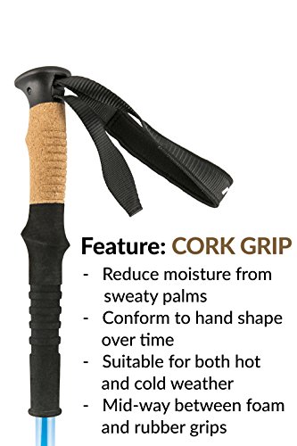 The locking mechanism on the Voli Trekking Pole is intuitive and easy to use - just turn clockwise to lock and counter-clockwise to unlock. The grip is the perfect mixture of foam and cork to ensure optimal grip comfort. Our pole also comes with wrist straps for additional safety.