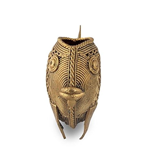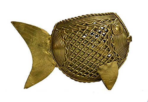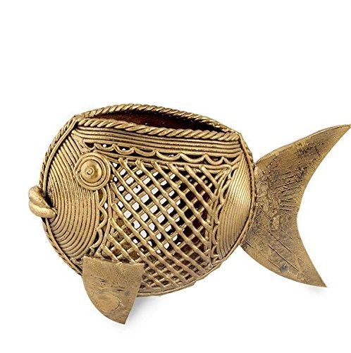 Purpledip Rare Collection Dhokra Art Odisa Art Fish Artifact Pen Holder: Feng Shui Vaastu Significance Miniature Statue(11038)
