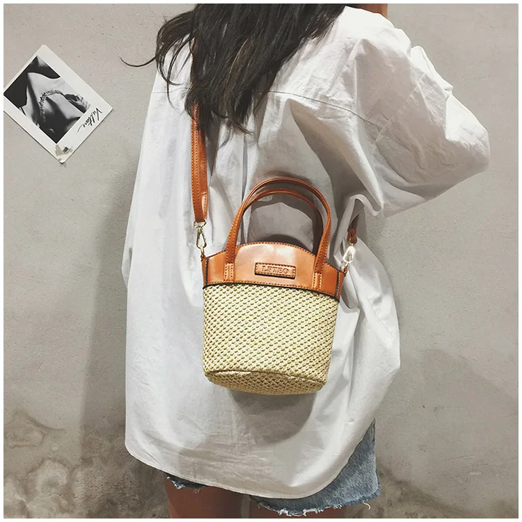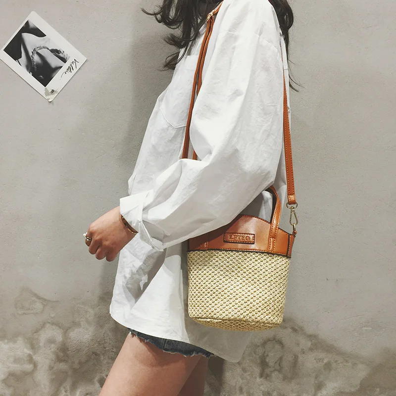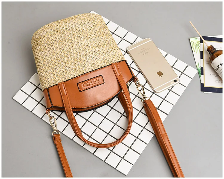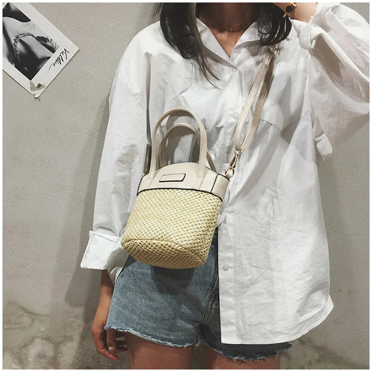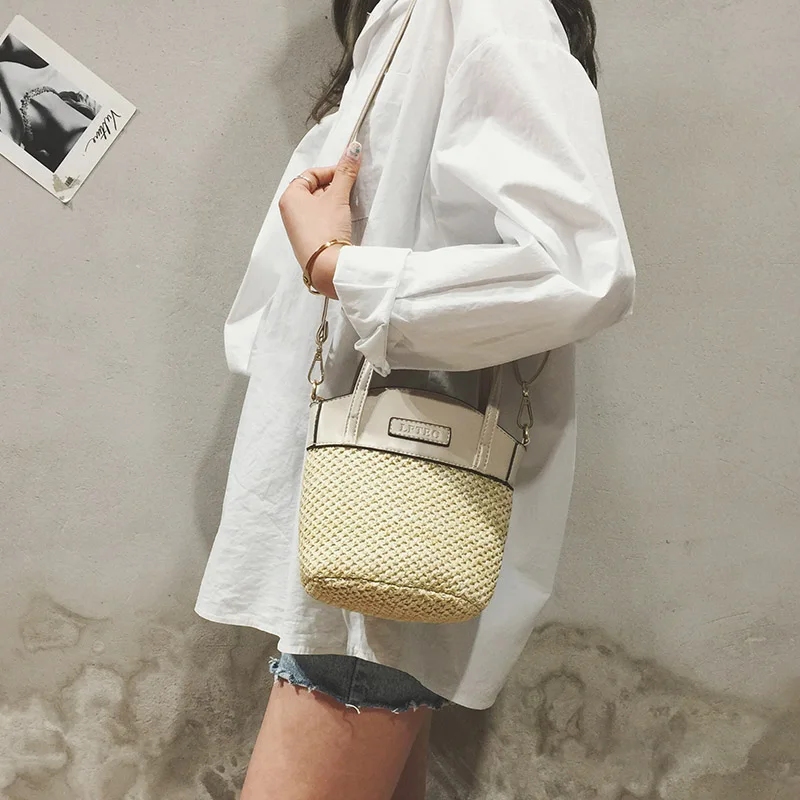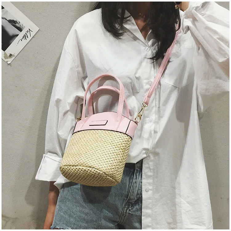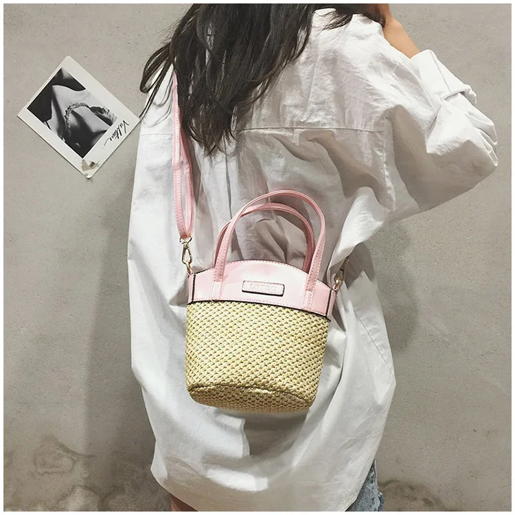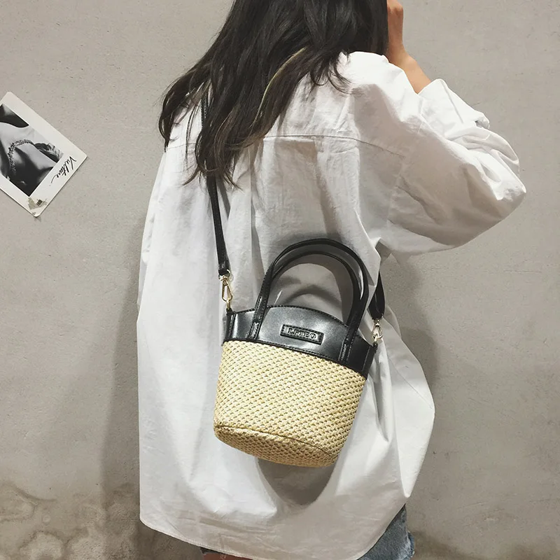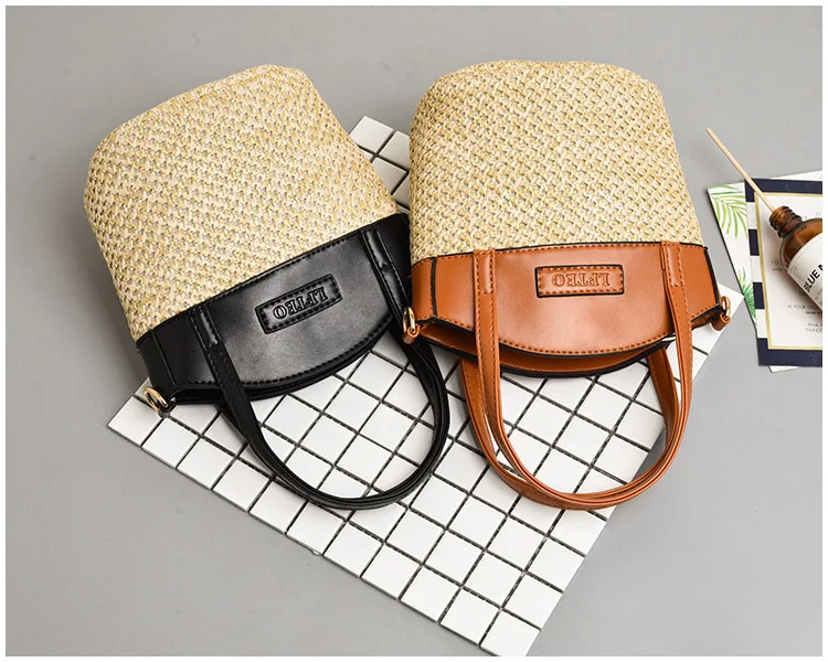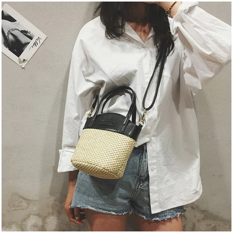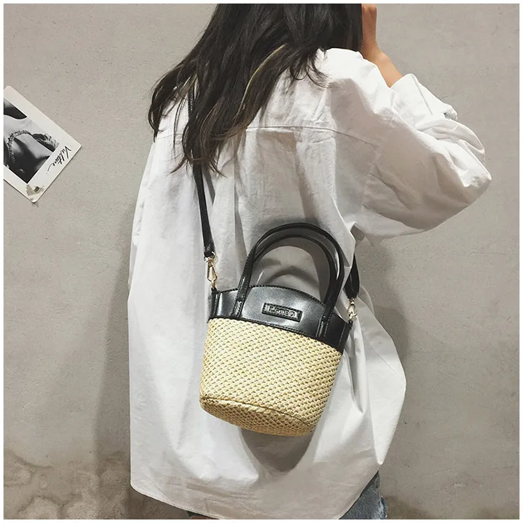 bolsa feminina Luxury:zipper straw bucket bags