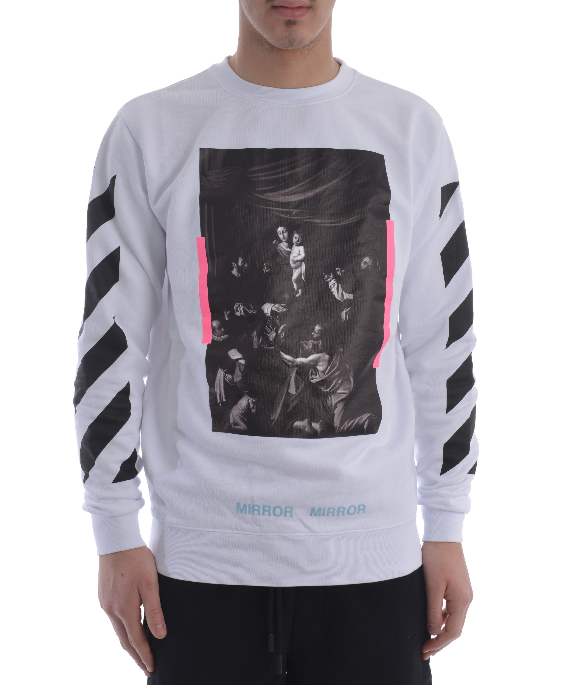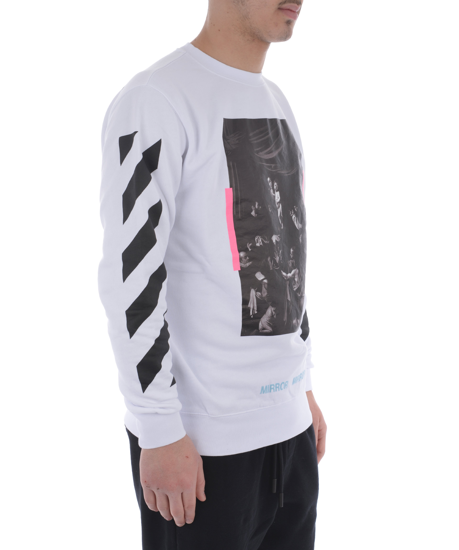Painting Print Sweatshirt from Off-White: White Painting Print Sweatshirt with a front print design, a side sleeve prints and ribbed hemline and handcuffs.