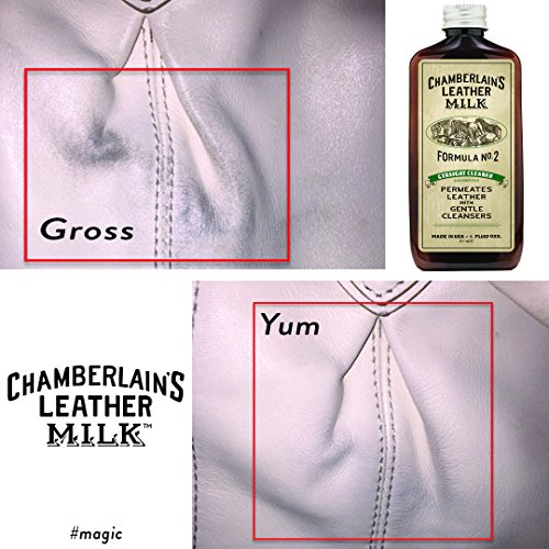 -. Feature : CLEANS DIRT, OIL SPOTS, DENIM TRANSFER AND MORE - Straight Cleaner uses natural, non-alkaline cleaning agents and alcohols that penetrate your leathers fibers and help loosen everyday dirt, oil spots, denim transfer and other clogging substances. Gently clean your leather furniture, auto interior, handbags, lage, purses, shoes, boots to make them like new again. / ALL-NATURAL, CHEMICAL-FREE, GREAT SMELLING -Some cleaners use unnatural chemicals like saddle soaps, solvents, and synthetics in their products that leave a weird smell and make your leather feel sticky or greasy. You want to avoid these at all costs! Our formulas are water based and contain vital oils that safely clean and wash your leather. Leather Milk is imbued with a pleasing, light almond scent that dissipates quickly after use. / ONLY LEATHER CLEANER TRUSTED BY SADDLEBACK LEATHER - Our formula is so good that it's the only recipe trusted by Saddleback Leather Company-- maker of some of the best looking, highest-quality leather goods you'll ever find. Each and every Saddleback Leather product is conditioned with Leather Milk before being shipped out to customers. / FREE REUSABLE COTTON TERRY APPLICATOR PAD - For best results, apply Leather Milk to the reusable applicator pad and rub thoroughly into your leather goods. We supply you with a cotton terry pad because we've found it to be the best applicator for leather goods and it's reusable so it cuts down on environmental waste! / MONEY-BACK GUARANTEE - We are so confident that you will love Leather Milk Straight Cleaner that we will give you a 100% refund if you are not satisfied for any reason. No questions asked! So you can try Leather Milk with a peace of mind. You've got nothing to lose so what are you waiting for?
