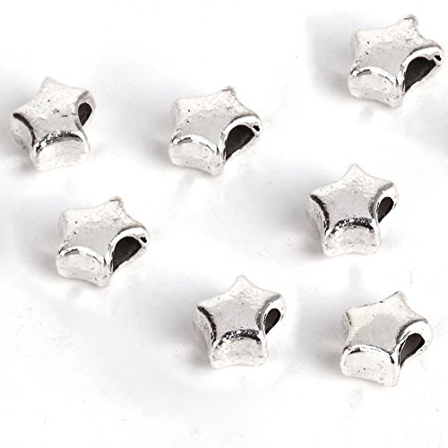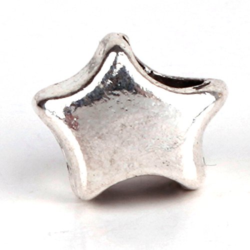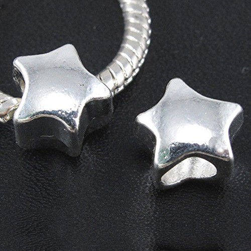 RUBYCA 30pcs Tibetan Silver Tone Spacer Beads Fit European Charms Bracelet Shiny Star Design