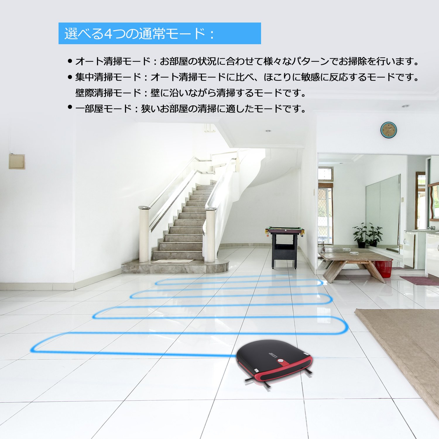 With a variety of programming actions, you can clean your room in a wide range.