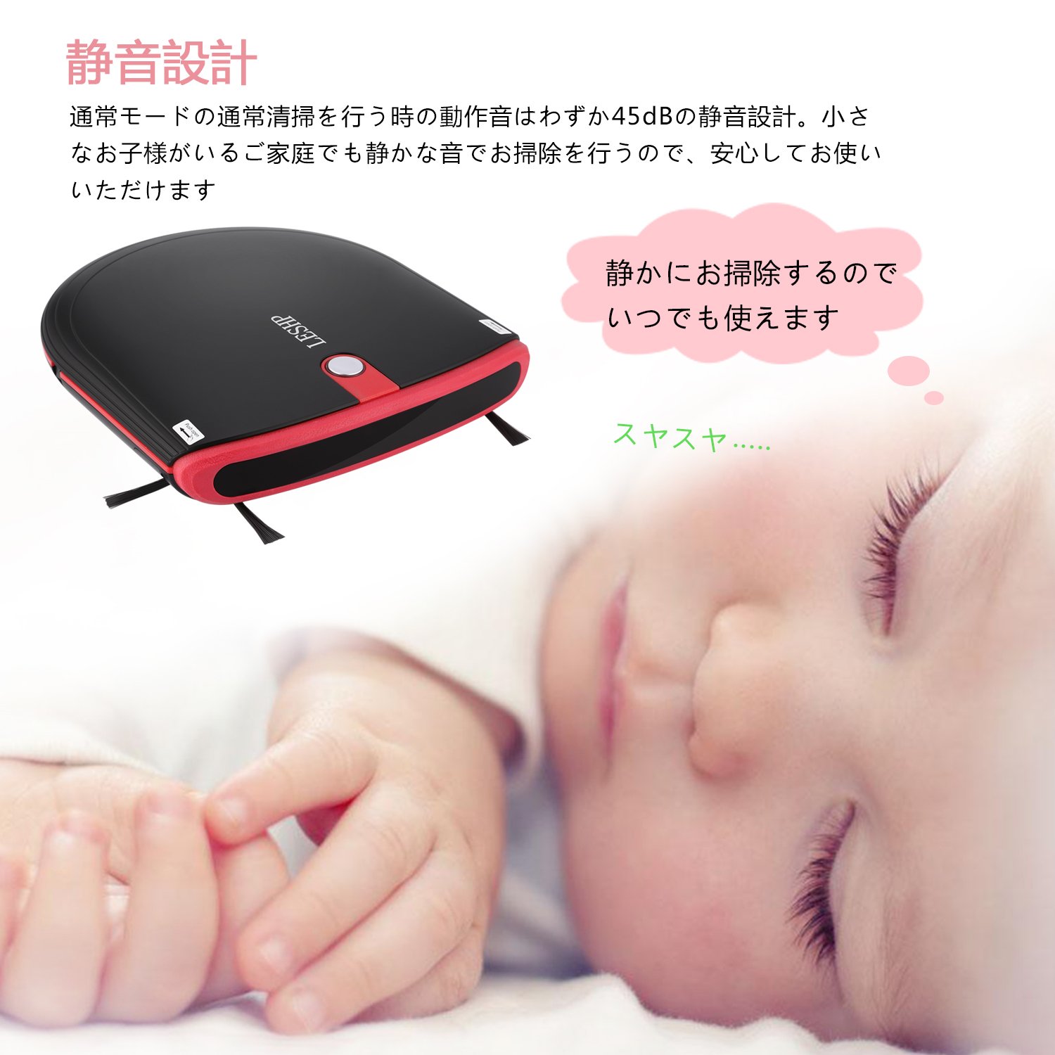 The normal sound cleaning operation in normal mode is silent design of only 45 dB.