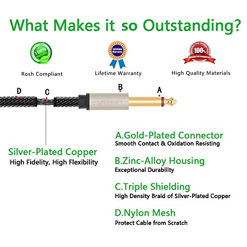 UGREEN Gold Plated 3.5mm 1/8" TRS to 6.35mm 1/4" TS Mono Y-Cable Splitter Cord for iPhone, iPod, Computer Sound Cards, CD Players, Multimedia Speakers and Home Stereo Systems (6FT)