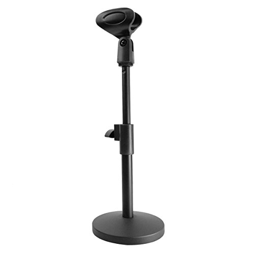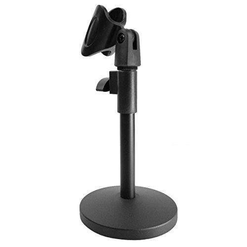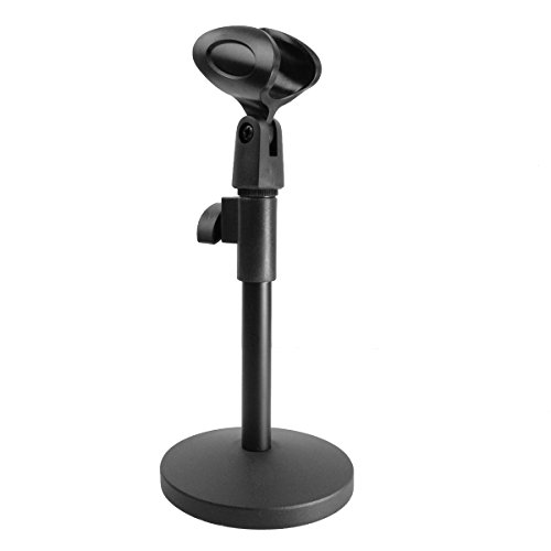 -. Title : CamDesign 8"/20 cm Black Iron Base Professional Adjustable Foldable Desk Microphone Stand /Round Base Mic Stand /Table Mic Stand with Mic Clip for Meetings, Lectures and Podcasts