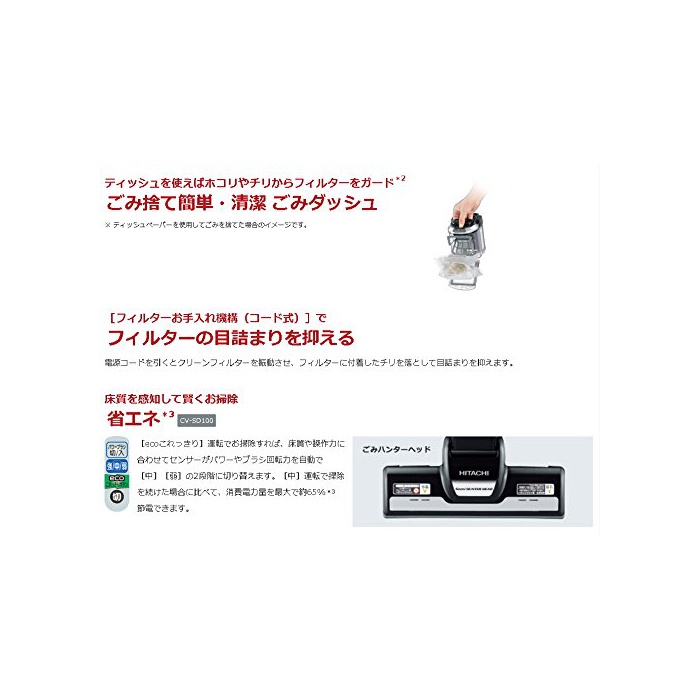 히타찌(HITACHI) 히타찌 싸이클론식 클리너(터빈 브러시) 블랙【청소기】HITACHI 2 단부스트 싸이클론 CV-SD90-K