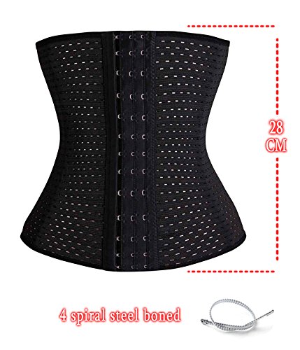 -. Feature : Top quality !!! This corset is supported by 4 spiral steel bones, an ideal for a hourglass shape,excellent fit for short torso and normal torso body types.Can be used for yoga, postpartum belly abdomen corset etc. / The 3 hooks for puerpera corset waist Training, make you Slim and beautiful. Covered in front and back boning for added support, Smooth waistline, Columns 3 Hook And Eye closure classic design, allow you to adjust size as necessary. / High elastic fabric breathable and comfortable enough to be worn all day long, sweat-free comfort, antibacterial, moisture wicking. / High Compression. It will also works for long torso. It helps to reduce 4 - 5 inches in waist when you wear it. Select the size you like with the map size. Or you could read the product description you need to select the right size / CUSTOMERS SAY: Love this waist cincher! Not only is it affordable & durable, but it fits nicely too!