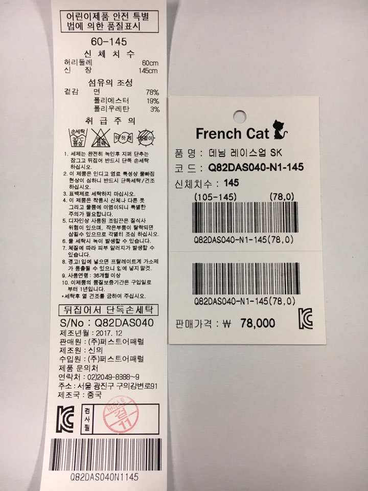 제조자 : 퍼스트어패럴