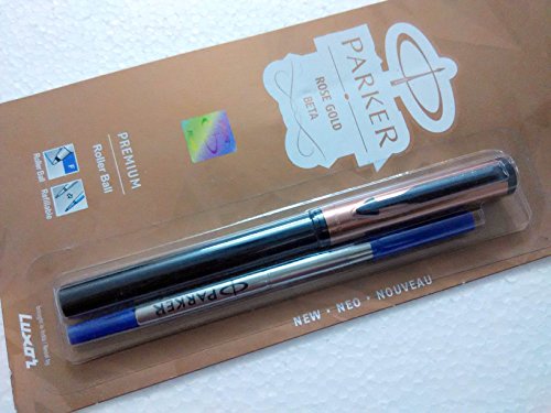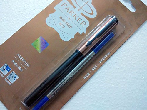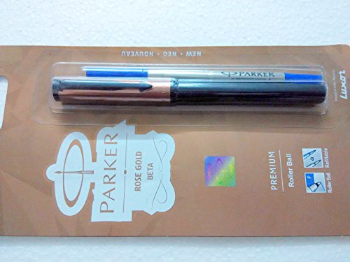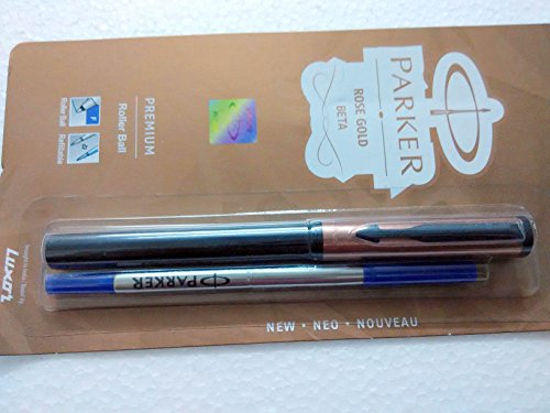 -. Title : Parker Beta Premium Roller Ballpen BallPoint Pen Rose Gold Finish Cap Blue Ink New