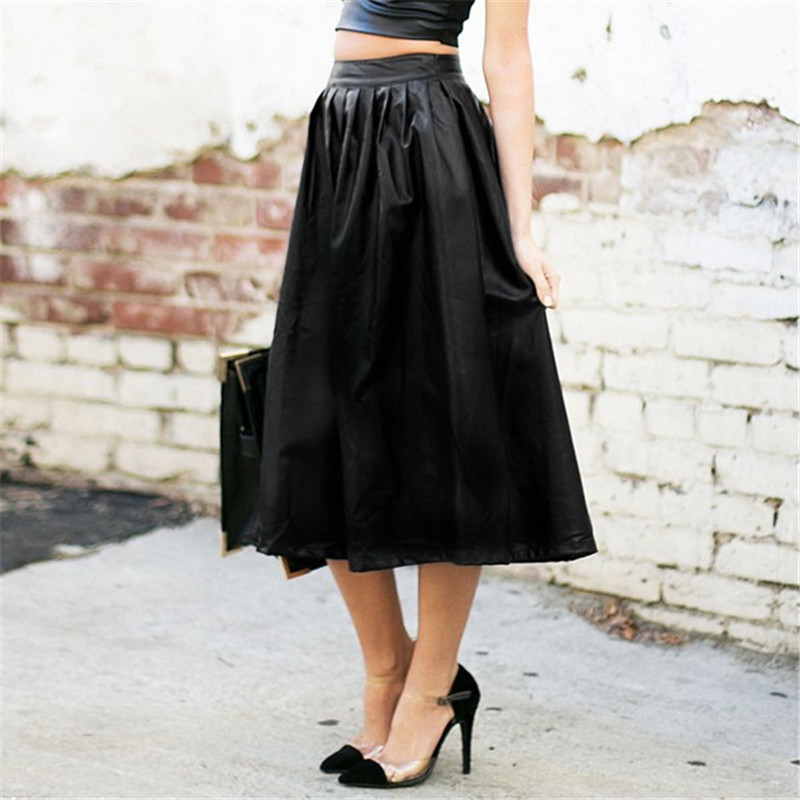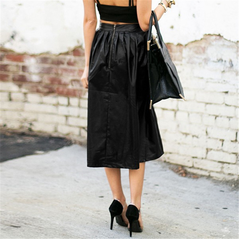 PU Leather,Back Zipper,High Waist,Calf Length