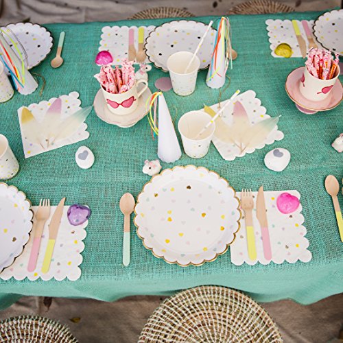Fire and Creme Hearts Large Foiled Scalloped Party Paper Plates Gold and Pastel Colors 9 x 9" - Pack of 8