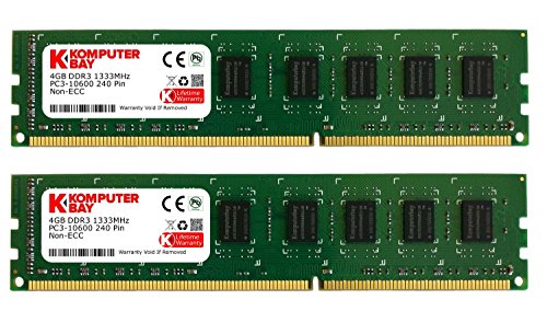 Komputerbay 8GB (2 X 4GB) DDR3 DIMM (240 pin) 1333Mhz PC3 10600 / PC3 10666 9-9-9-25 1.5v 8 GB KIT