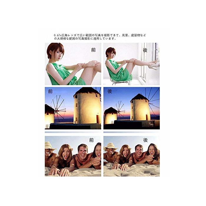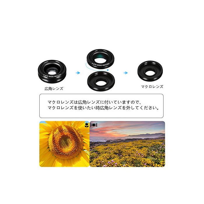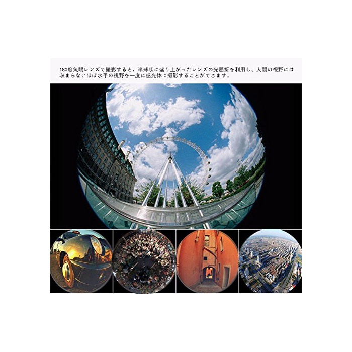 ☆*광학10배 망원 줌렌즈,디지탈 카메라 불요에 간편하게 먼 곳의 경치는 눈앞과 같이 간단하게 사진을 찍히기 때문에,운동회나 콘서트,경계심이 강한 동물을 먼 곳에서 촬영이나 접근할(다가올) 수 없는 피사체를 크게 촬영 등에 최적!*180도 어안렌즈에 촬영하면,반구상에 분위기가 산 렌즈의 광굴절을 이용하고, 인간의 시야에는 수습되지 않는 거의 수평의 시야를 일시에 감광체로 촬영 하는 것 를 할 수 있습니다.*0.67x광각 렌즈에 넓은 범위의 사진을 촬영할 수 있고, 풍경,건축물 등의 대규모 범위의 사진 촬영에 적용 하고 있습니다.*매크로 렌즈는 곤충이나 화등이 미세한 것을 촬영하면,환상 적에 섬세한 사진이 찍힙니다.