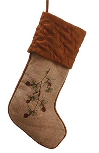 Allstate Birches Tan Embroidered Pine Cone Christmas Stocking, 22", Brown