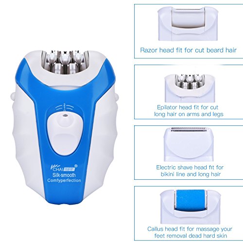Product introduction Name: 5-in-1 Epilator Brand: CHAINER Cutter head type: Multiple cutter head-Epilator Head, Shaver Head, Callus Remover Head, Razor Head Time of charging: 4 hours in first time using, then every time only charging 1.5 hours Length of use: >45mins Rated Frequency: 50HZ-60HZ8 Rated Power: 2W