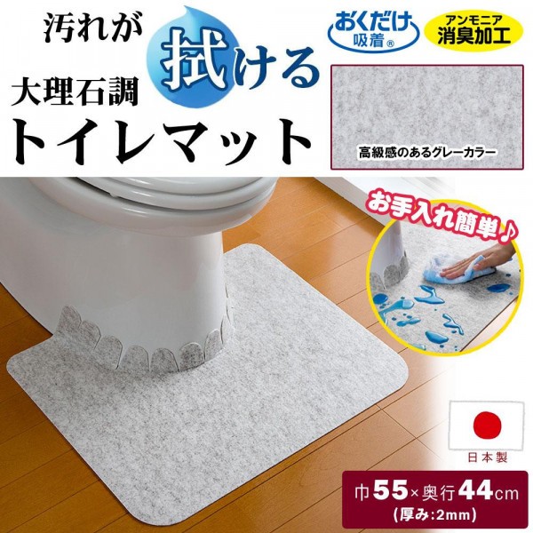 | 水や汚れをはじく、お手入れ簡単な大理石調トイレマット♪ |