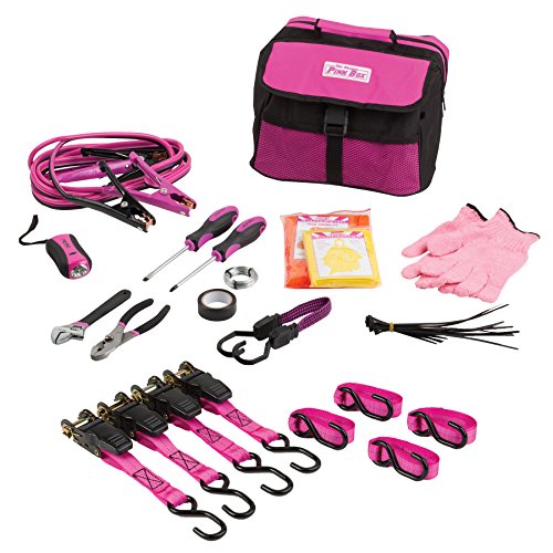 The Original Pink Box PBCSAFECAR Emergency Roadside Assistance Kit for Vehicles and Ratchet Strap Bundle