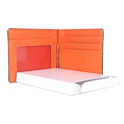 Product DescriptionPattern : Money Clip Wallet Material : Faux Leather Money Clip : 3 Window Slot :1 Colors : Outer - Black Inside - Orange Origin : Korea Dimensions : Height 3.3"-8.3cm Legth : 4.3"-13cm0