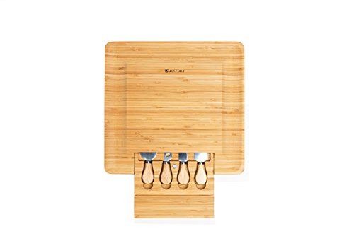 ✔PREMIUM, QUALITY CRAFTSMANSHIP OF THE BOARD - Each board is hand crafted from quality, premium Japanse Moso Bamboo wood, the cheese board is expected with strong, firm durability when cutting meat/cheese/fruit/vegetables on it. The very smooth surface of the board also shouts out the high-quality craftsmanship of the board, handled every detail thoroughly to provide you a joyful use of the cheese board.