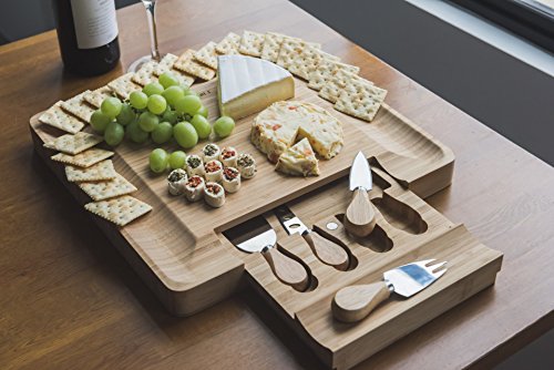 ✔LOOK NO FURTHER FOR PLATING/SERVING CHEESE - One thing you may not miss out is to enjoy cheese with other small side dishes such as crackers, and small fruits and a glass of wine. This quality moso wood made cheese serving board is made to fulfill all of your tasty needs!