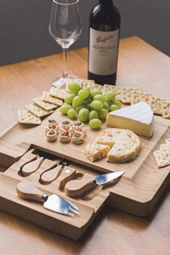 Unlike other traditional wooden cheese boards with the same rectangular shape; this upgraded, newer version of cheese board features grooved edges surrouding the board for food display/serving purpose, with a thoughtful design of concealed drawer with magnetic clasp in the drawer and the board for safety purpose.