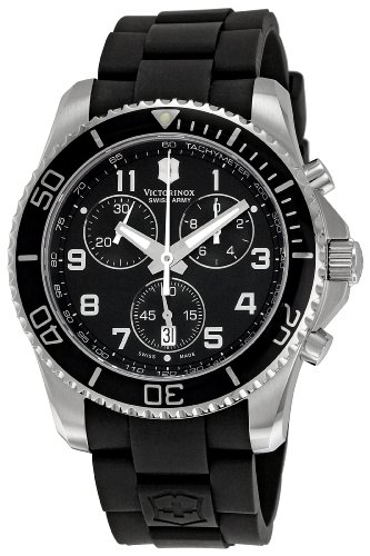 -. Binding : Watch -. Brand : Victorinox -. Color : Black -. Department : mens -. EAN : 0845960006491 -. Feature : Round watch featuring corrugated dive-style bezel, luminous hands, and date window at 6 o'clock / Additional functions include three chronograph subdials / 43 mm stainless steel case with anti-reflective sapphire dial window / Quartz movement with analog display / Rubber bracelet with buckle closure / Water resistant to 100 m (330 ft): In general, suitable for swimming and snorkeling, but not scuba diving -. Label : Victorinox Swiss Army -. Manufacturer : Victorinox Swiss Army -. Model : VICT241431 -. MPN : VICT241431 -. PackageQuantity : 1 -. PartNumber : VICT241431 -. ProductGroup : Watch -. ProductTypeName : WATCH -. Publisher : Victorinox Swiss Army -. SKU : B003ZJW7FY -. Studio : Victorinox Swiss Army -. Title : Victorinox Swiss Army Men's 241431 Maverick Black Dial Stainless Steel Watch -. UPC : 845960006491
