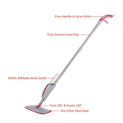 iKayaa Microfiber Spray Mop, Quick Sweep Cleaning Tool With 380ML Water Bottle for Household, Hardwood