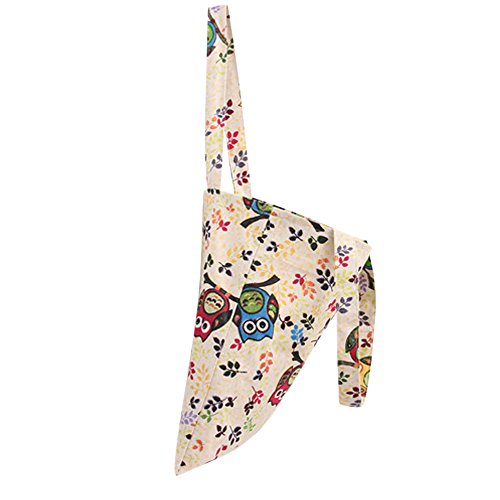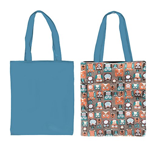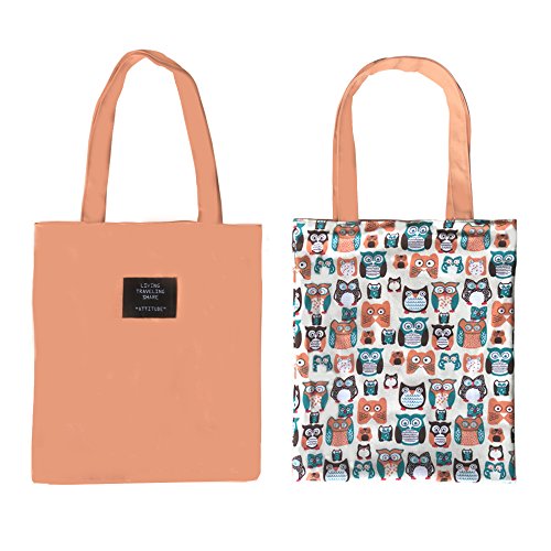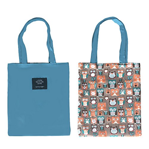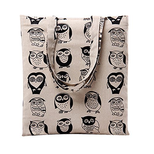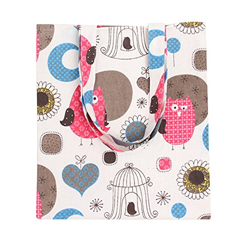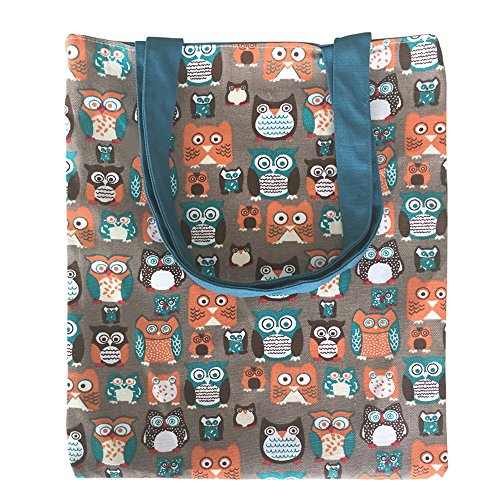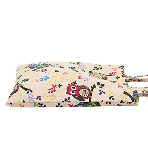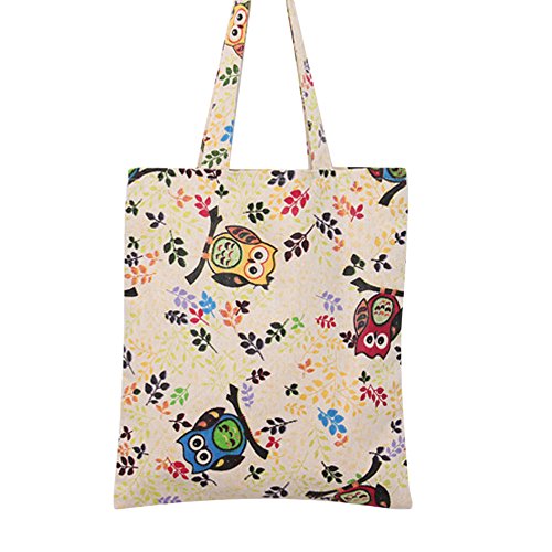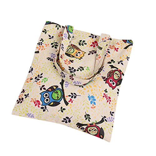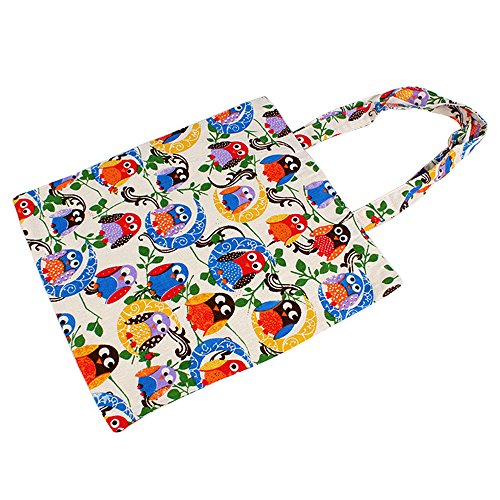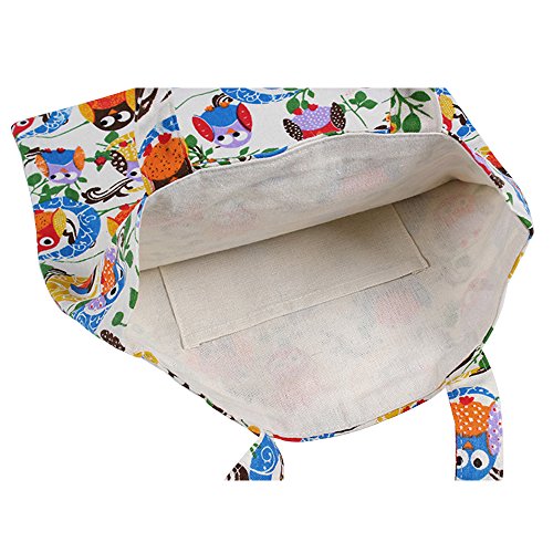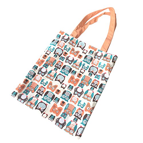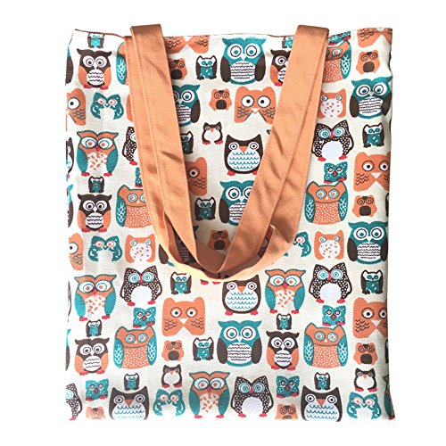 | Caixia Women's Cotton Colorful Owl Print Canvas Tote Shopping Bag |