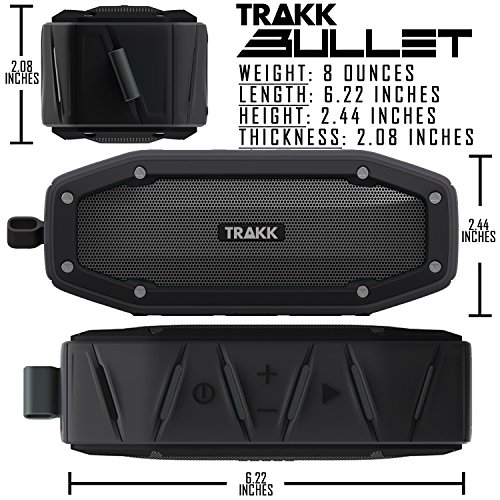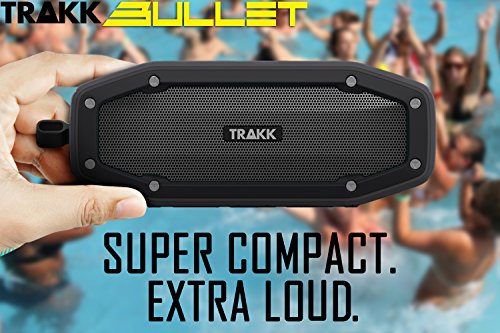 TRAKK BULLET Waterproof Bluetooth Speaker Featuring Next Generation MaxBass - The 10W+ Output Power Ultra Portable Wireless Speaker is Ideal for Golf, the Beach, the Pool, or the Shower - Black