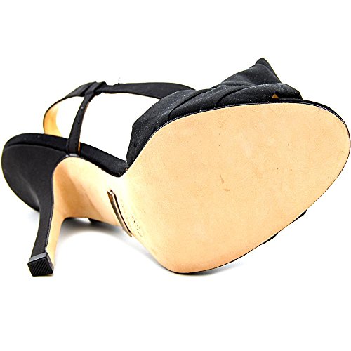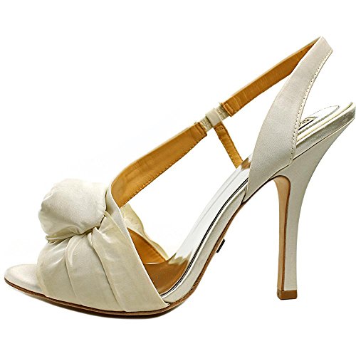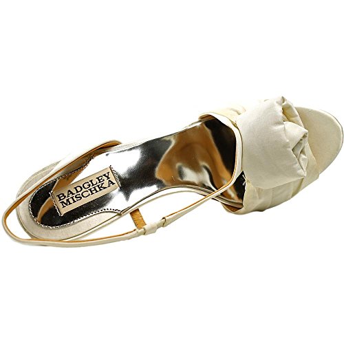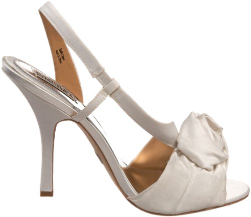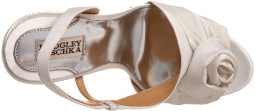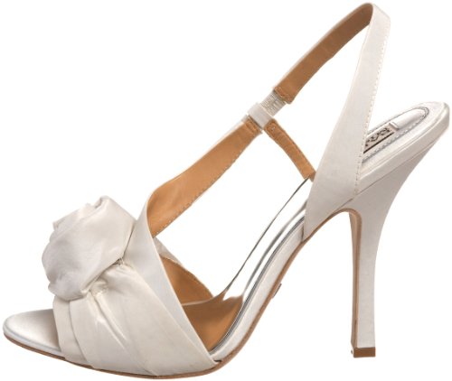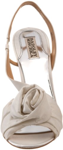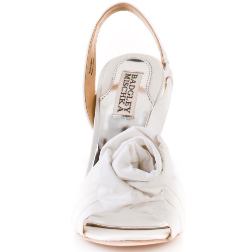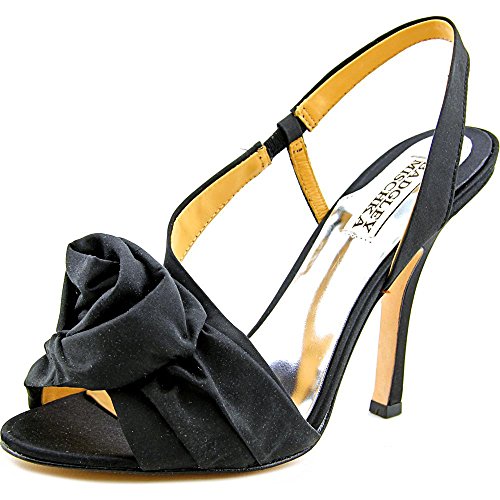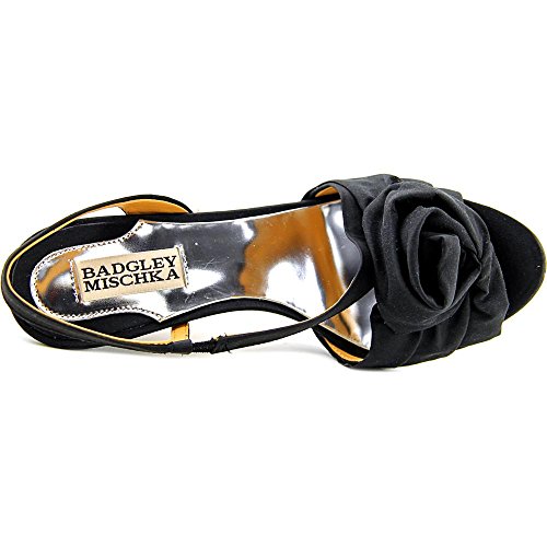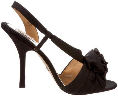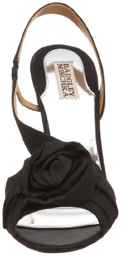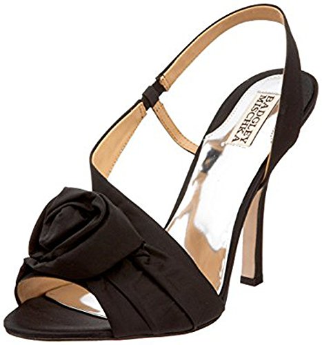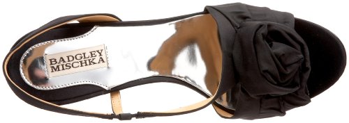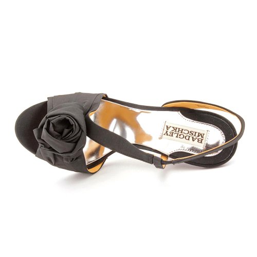 Amazon.com Bring a sophisticated lift to a little black dress with the Lanah sandal from Badgley Mischka. This beauty of a shoe features an asymmetrical fabric-over-leather upper enhanced with pleats and a bold rose accent for a feminine flourish. A touch of elastic on the strap offers a secure fit, and the slender high heel gives an alluring lift. 0