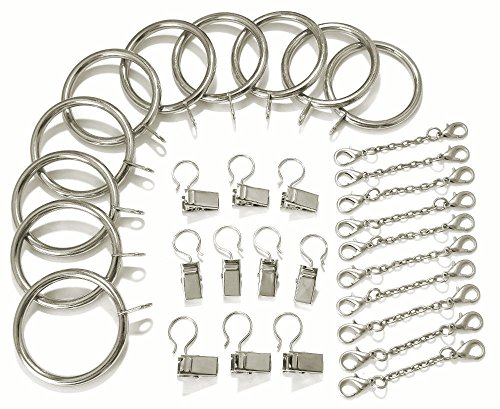 Binding : Kitchen Product Description Curtain Rod Connection provides popular products with discounted prices. Our metal rings have an inside diameter of 1 3/4" to fit on poles from 1"-1 1/2". They feature our exclusive Pinch a Pleat curtain pinch clips and Ripple Pleat connecting chains with a full instruction sheet to create 4 different styles, using only rod pocket or flat panels. 0