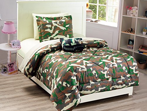 Mk Collection 6 PC Twin size Tank Army green Brown Beige Comforter And sheet set With Furry Buddy Included New (Twin, Comforter set)